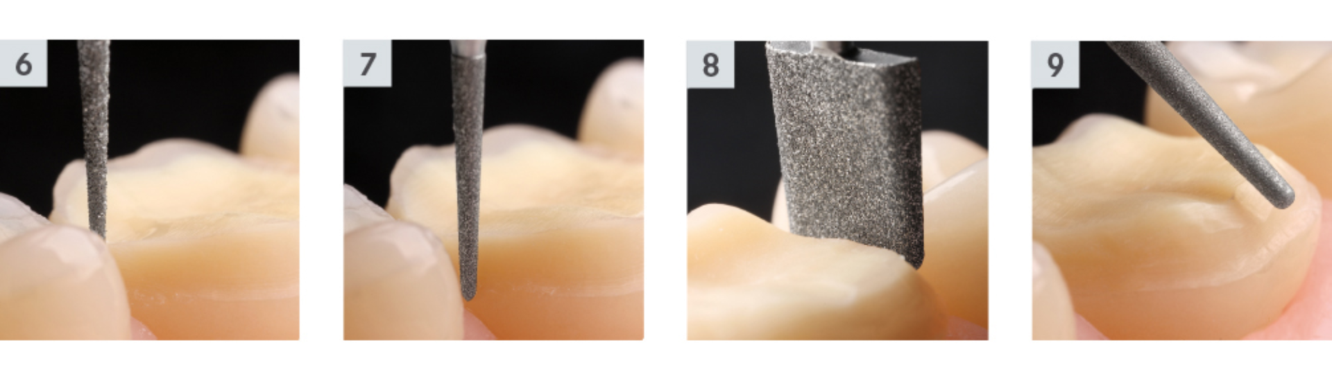 Gemeinsam mit Priv.-Doz. Dr. M. Oliver Ahlers und Prof. Dr. Daniel Edelhoff haben wir daher eine neue Abfolge von Präparationsschritten und dazu passende neue Schleifkörpergeometrien entwickelt, die das Vorgehen deutlich erleichtern. Die Zusammenstellung der Sets ist abgestimmt auf die Präparation für minimalinvasive Okklusionsonlays aus IPS E.max Lithiumdisilikat (Ivoclar) mit adhäsiver Befestigung. Die Table Top-Sets eignen sich sowohl für die Präparation von keramischen als auch von indirekten Composite Okklusionsonlays.