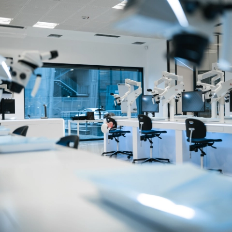 Die Komet Academy in Verona bietet alles, was ein hochwertiges Training ausmacht: Empfangs- und Relax-Bereich, Vortragsraumraum (u. a. 100" Bildschirme, Anbindung an Master-Mikroskope) sowie Phantomköpfe für praxisnahes Hands-on. Arbeiten Sie unter modernster Visualisierung und mit hochwertiger Ausstattung – für eine Lernkurve, die Sie direkt in den Praxisalltag mitnehmen.