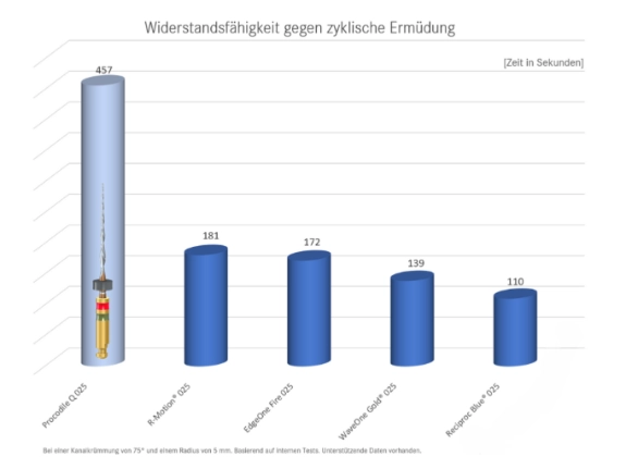 (NiTi) sehr starr sind. Das reziproke Bewegungsmuster optimiert mechanische Eigenschaften wie Frakturanfälligkeit und Ermüdungsverhalten der Feilen. Durch die Rückwärtsbewegung wird die Feile vor einer zyklischen Ermüdung geschützt. Auch in stark gekrümmten und sehr engen Kanälen lässt sich so problemlos arbeiten.