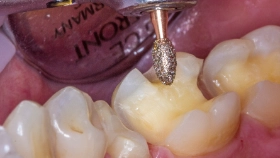 Wenn eine geklebte Kompositfüllung nur zu 20 % defekt ist und kein Anhaltspunkt auf Sekundärkaries besteht, macht es aus minimalinvasiven Gesichtspunkten keinen Sinn, die Füllung zu 100 % zu entfernen. Bei gut gemachten, teildefekten, zahnfarbenen Restaurationen machen wir immer eine Reparaturfüllung. Wenn man sich dazu entscheidet, trotzdem eine Füllung zu entfernen ist es natürlich wichtig, das korrekte Instrumentarium zu verwenden, damit man nicht Gefahr läuft, gesunden Zahn wegzuschleifen.