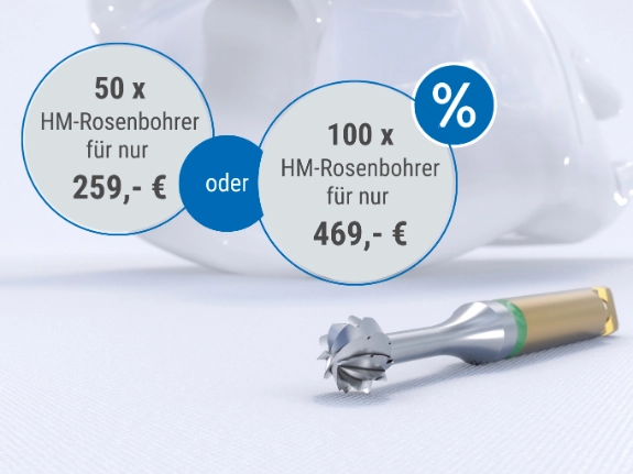 Sichern Sie sich 50 oder 100 Rosenbohrer aus Hartmetall Ihrer Wahl zum einmaligen Spitzenpreis ab nur 4,69 € pro Stück.