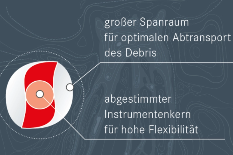 Alle Taper .06 Instrumente profitieren von dem variabel getaperten Feilenkern. Durch den variabel getaperten Feilenkern ist der Spanraumn der Feile vergrößert.